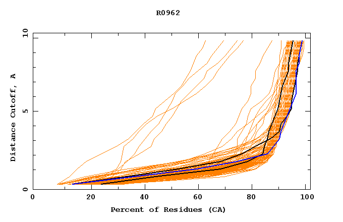 GDT analysis: largest set of CA atoms (percent of the modeled structure) that can fit under DISTANCE cutoff: 0.5A, 1.0A, 1.5A, ... , 10.0A