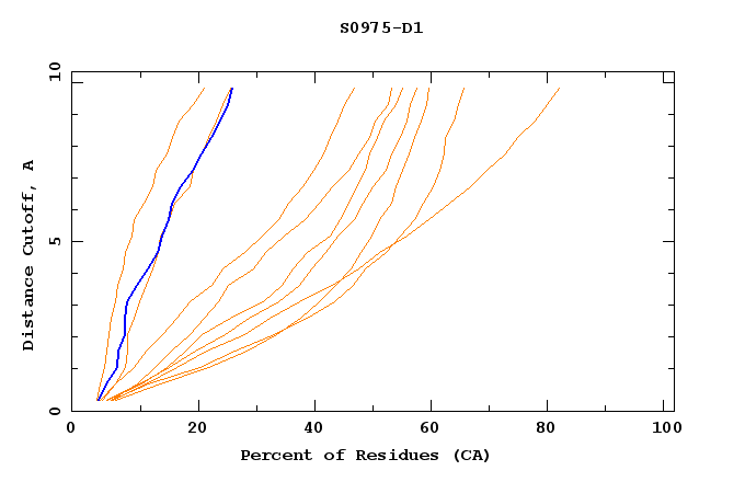 GDT analysis: largest set of CA atoms (percent of the modeled structure) that can fit under DISTANCE cutoff: 0.5A, 1.0A, 1.5A, ... , 10.0A