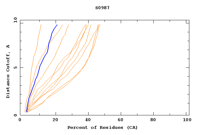 GDT analysis: largest set of CA atoms (percent of the modeled structure) that can fit under DISTANCE cutoff: 0.5A, 1.0A, 1.5A, ... , 10.0A