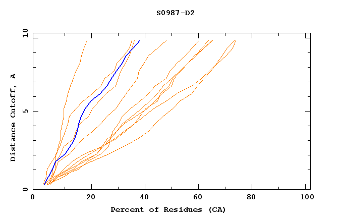 GDT analysis: largest set of CA atoms (percent of the modeled structure) that can fit under DISTANCE cutoff: 0.5A, 1.0A, 1.5A, ... , 10.0A