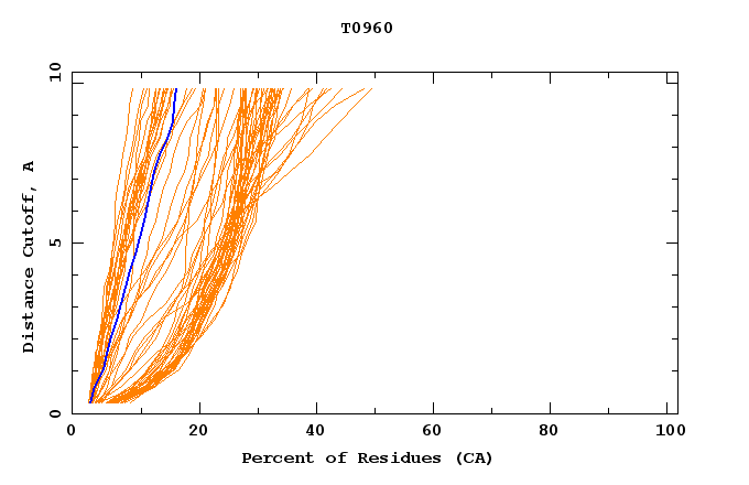 GDT analysis: largest set of CA atoms (percent of the modeled structure) that can fit under DISTANCE cutoff: 0.5A, 1.0A, 1.5A, ... , 10.0A