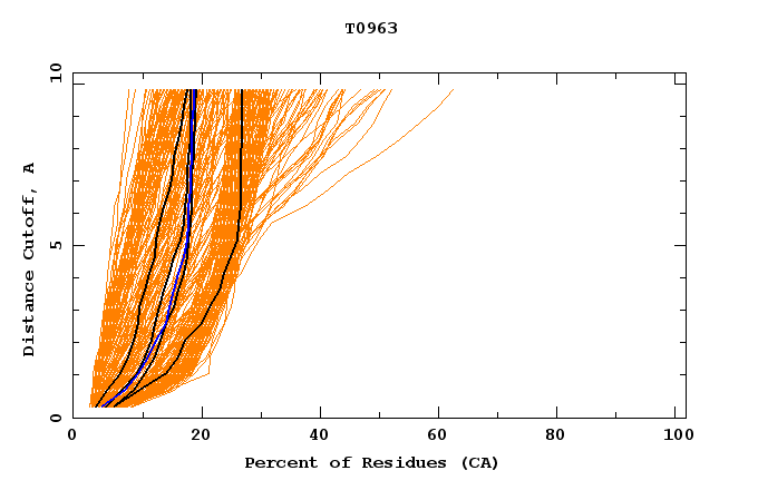 GDT analysis: largest set of CA atoms (percent of the modeled structure) that can fit under DISTANCE cutoff: 0.5A, 1.0A, 1.5A, ... , 10.0A