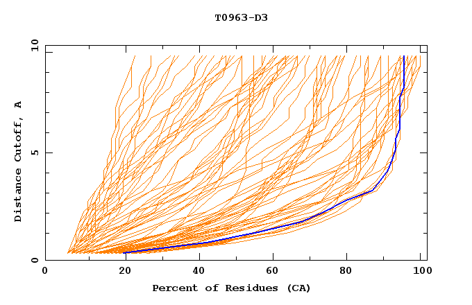 GDT analysis: largest set of CA atoms (percent of the modeled structure) that can fit under DISTANCE cutoff: 0.5A, 1.0A, 1.5A, ... , 10.0A