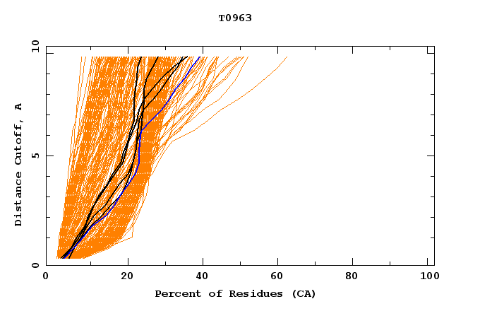 GDT analysis: largest set of CA atoms (percent of the modeled structure) that can fit under DISTANCE cutoff: 0.5A, 1.0A, 1.5A, ... , 10.0A