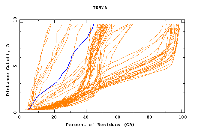 GDT analysis: largest set of CA atoms (percent of the modeled structure) that can fit under DISTANCE cutoff: 0.5A, 1.0A, 1.5A, ... , 10.0A