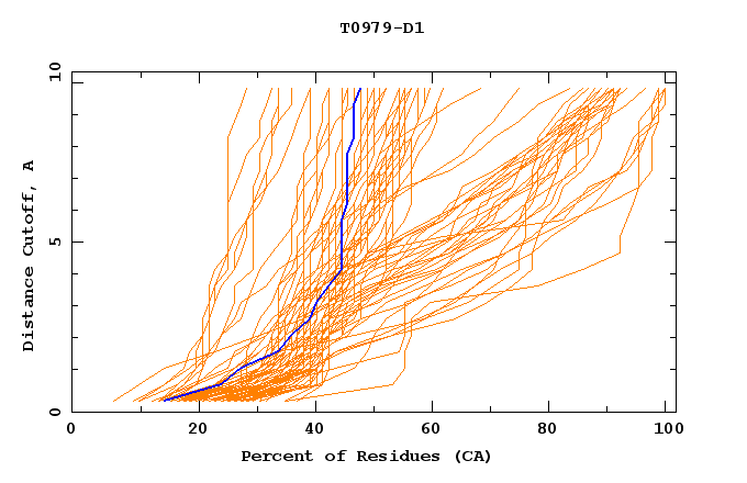 GDT analysis: largest set of CA atoms (percent of the modeled structure) that can fit under DISTANCE cutoff: 0.5A, 1.0A, 1.5A, ... , 10.0A