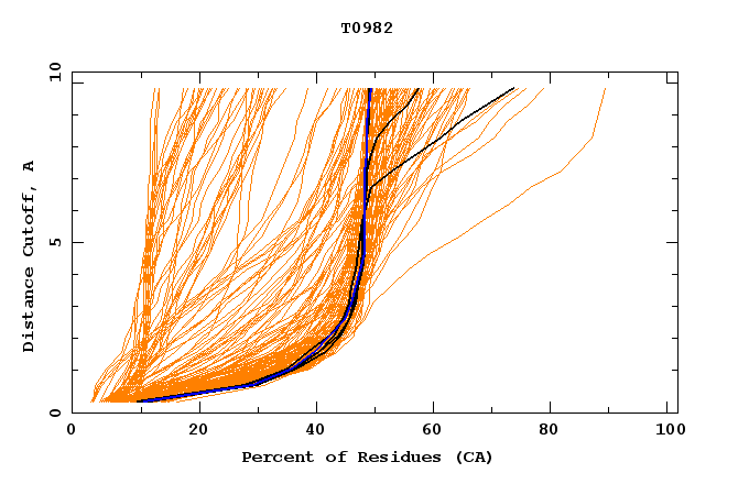 GDT analysis: largest set of CA atoms (percent of the modeled structure) that can fit under DISTANCE cutoff: 0.5A, 1.0A, 1.5A, ... , 10.0A