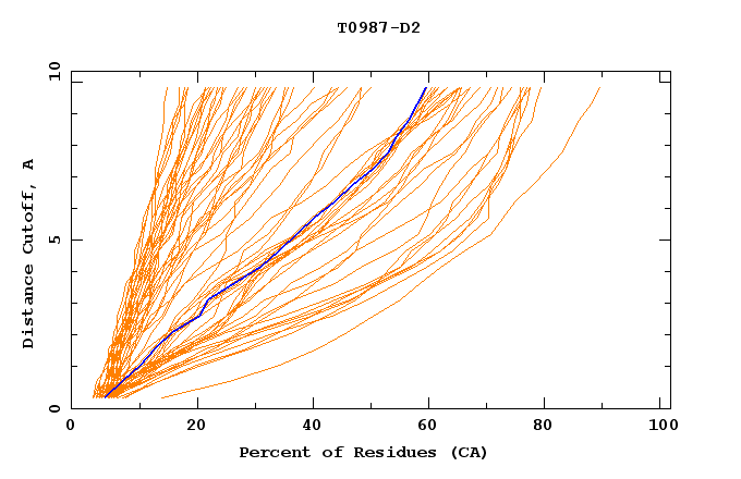 GDT analysis: largest set of CA atoms (percent of the modeled structure) that can fit under DISTANCE cutoff: 0.5A, 1.0A, 1.5A, ... , 10.0A