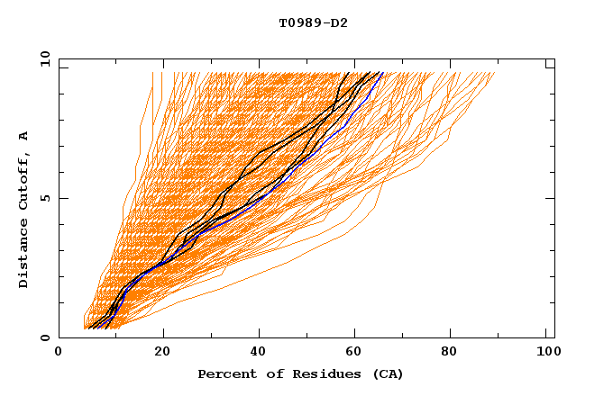 GDT analysis: largest set of CA atoms (percent of the modeled structure) that can fit under DISTANCE cutoff: 0.5A, 1.0A, 1.5A, ... , 10.0A