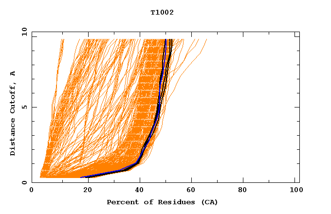 GDT analysis: largest set of CA atoms (percent of the modeled structure) that can fit under DISTANCE cutoff: 0.5A, 1.0A, 1.5A, ... , 10.0A