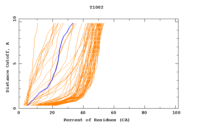 GDT analysis: largest set of CA atoms (percent of the modeled structure) that can fit under DISTANCE cutoff: 0.5A, 1.0A, 1.5A, ... , 10.0A