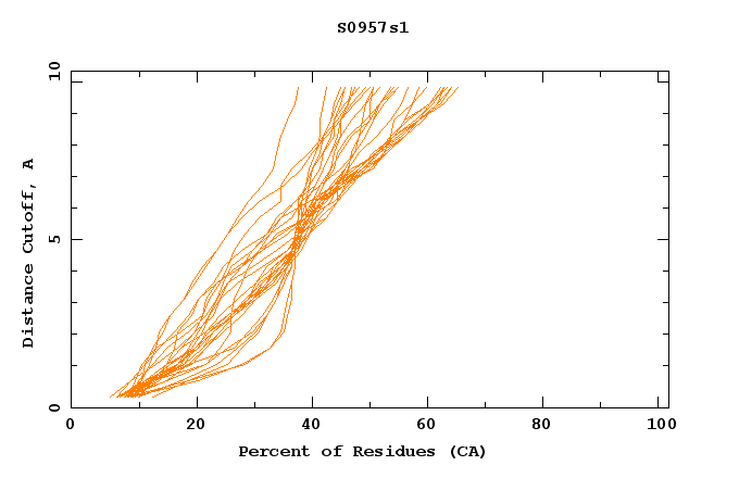 GDT analysis: largest set of CA atoms (percent of the modeled structure) that can fit under DISTANCE cutoff: 0.5A, 1.0A, 1.5A, ... , 10.0A