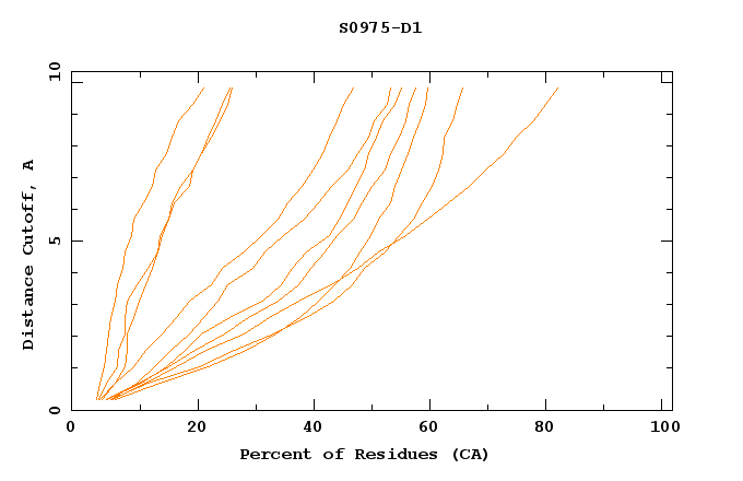 GDT analysis: largest set of CA atoms (percent of the modeled structure) that can fit under DISTANCE cutoff: 0.5A, 1.0A, 1.5A, ... , 10.0A