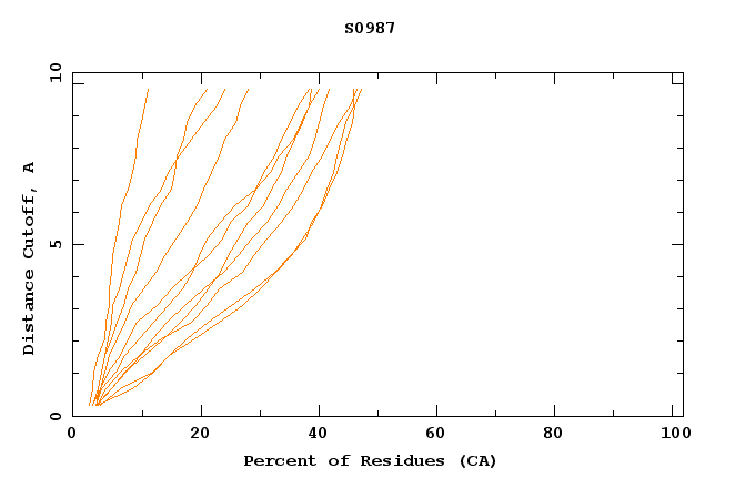 GDT analysis: largest set of CA atoms (percent of the modeled structure) that can fit under DISTANCE cutoff: 0.5A, 1.0A, 1.5A, ... , 10.0A